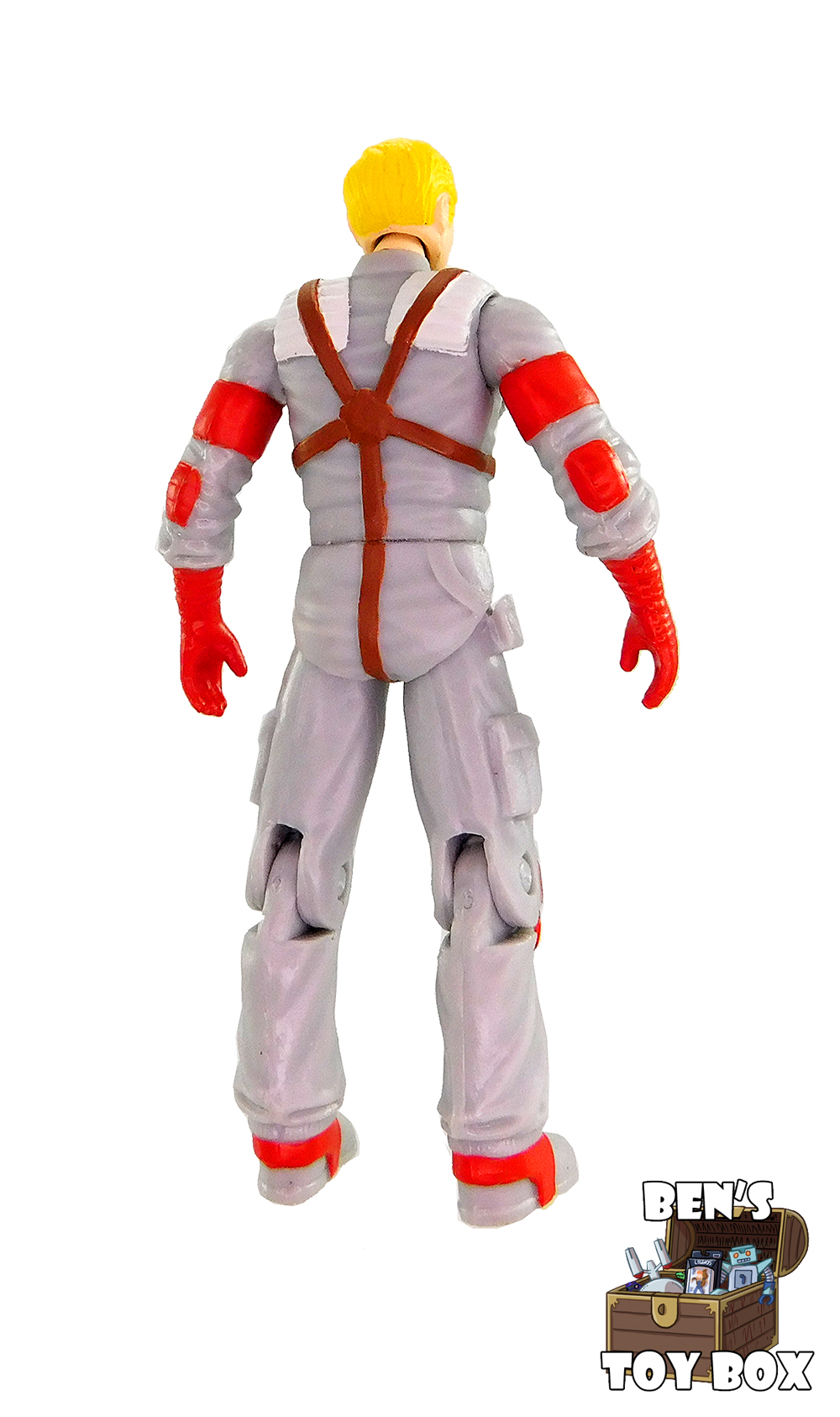All the figures included with these modern day M.A.S.K. figures come with new figures based on the original action figures. In the case of Matt Trakker, he is wearing the same outfit as the original, but the details are refined. His "base" outfit is a jumpsuit along with knee pads, long gloves and straps running over his body (it looks to me almost like a seat belt with five straps). On top of the chest is a small vest. The head sculpt is a bit more refined than the original featuring stronger cheeks and a more defined chin.
