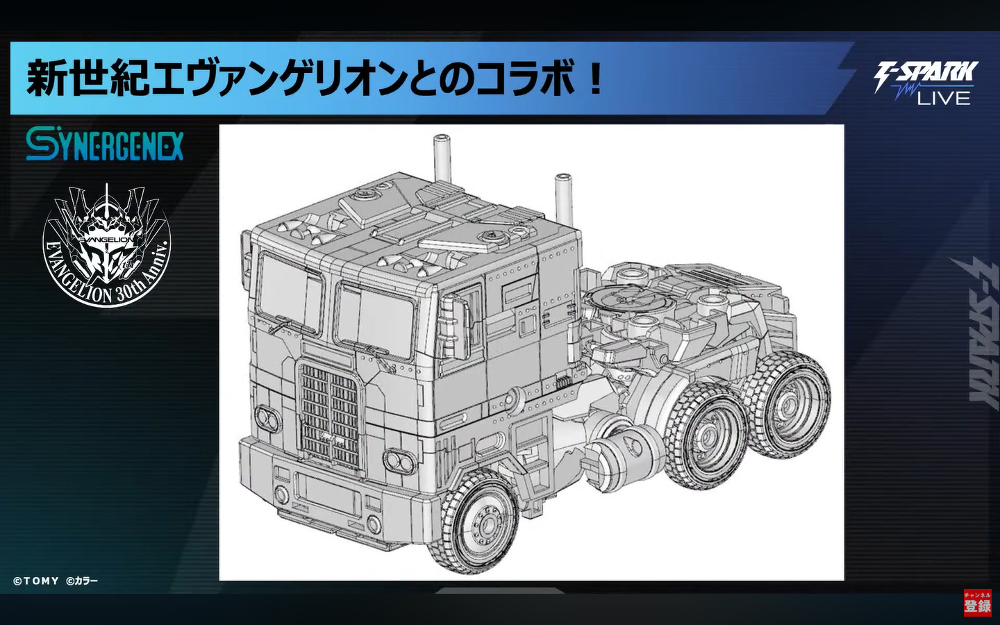 Earlier today, Takara Tomy held a live stream revealing new products across several of their toy lines. In a fun reveal they showed off the prototype for a Transformers x Evangelion crossover! This figure is based on Optimus Prime's movie design but features several elements of the Evangelion mecha integrated into the figure including an alternate face design! Check out the clip after the 2 hour mark in the embedded video below. I've screen capped relevant shots in the gallery below.