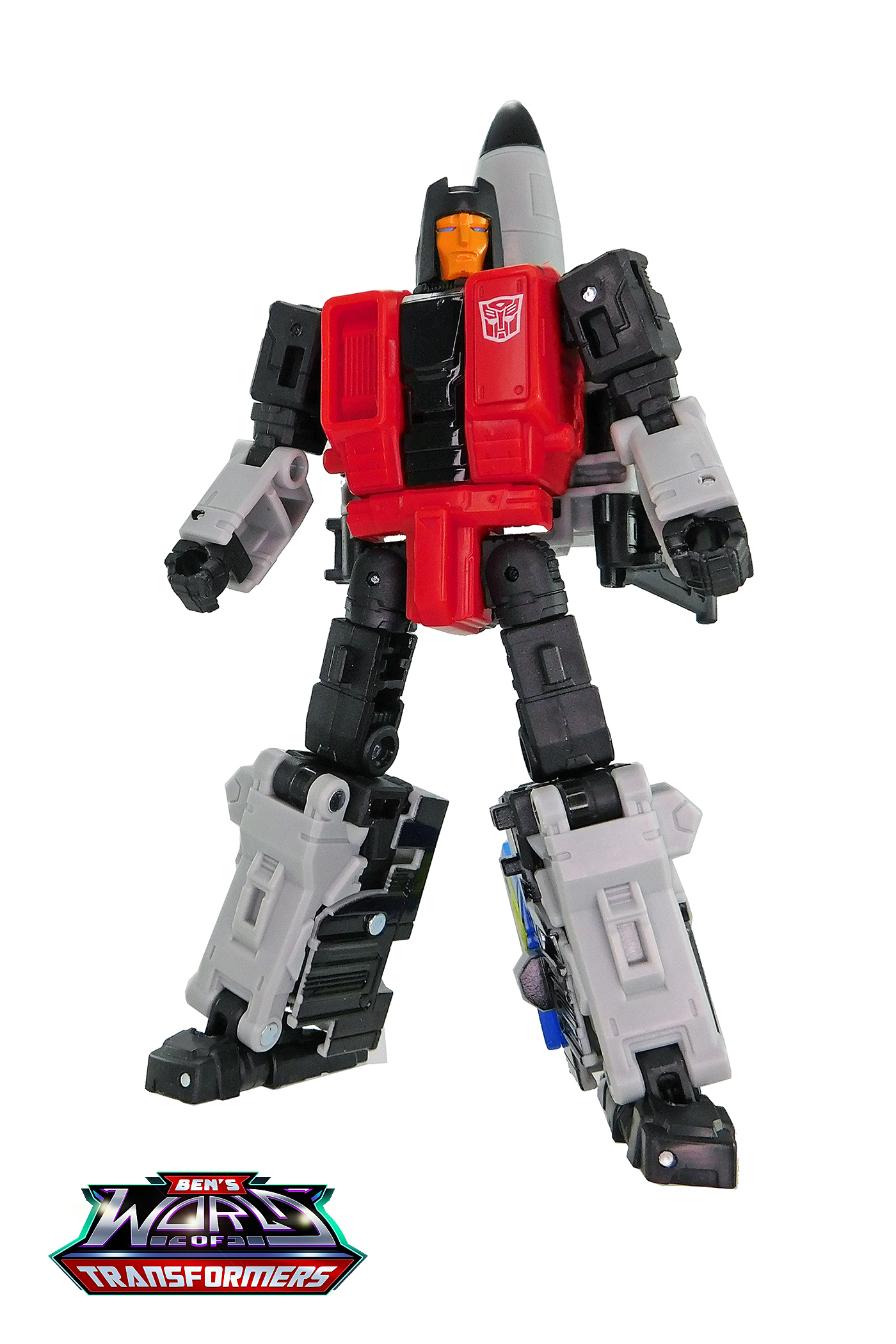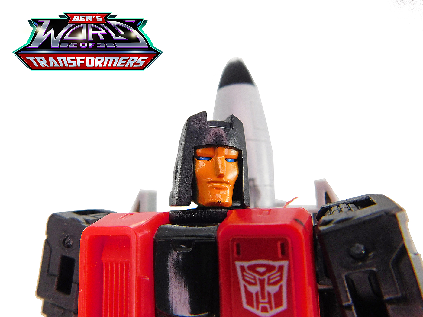 • Head: The head is a completely new piece, based on Skydive's G1 cartoon appearance. It features a "helmet" section with a central crest on top and a very "chiseled" looking face with sharp cheeks and thin eyes.