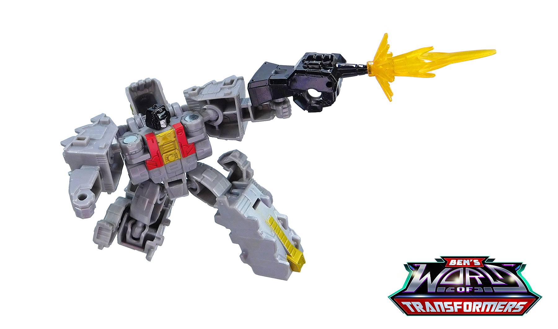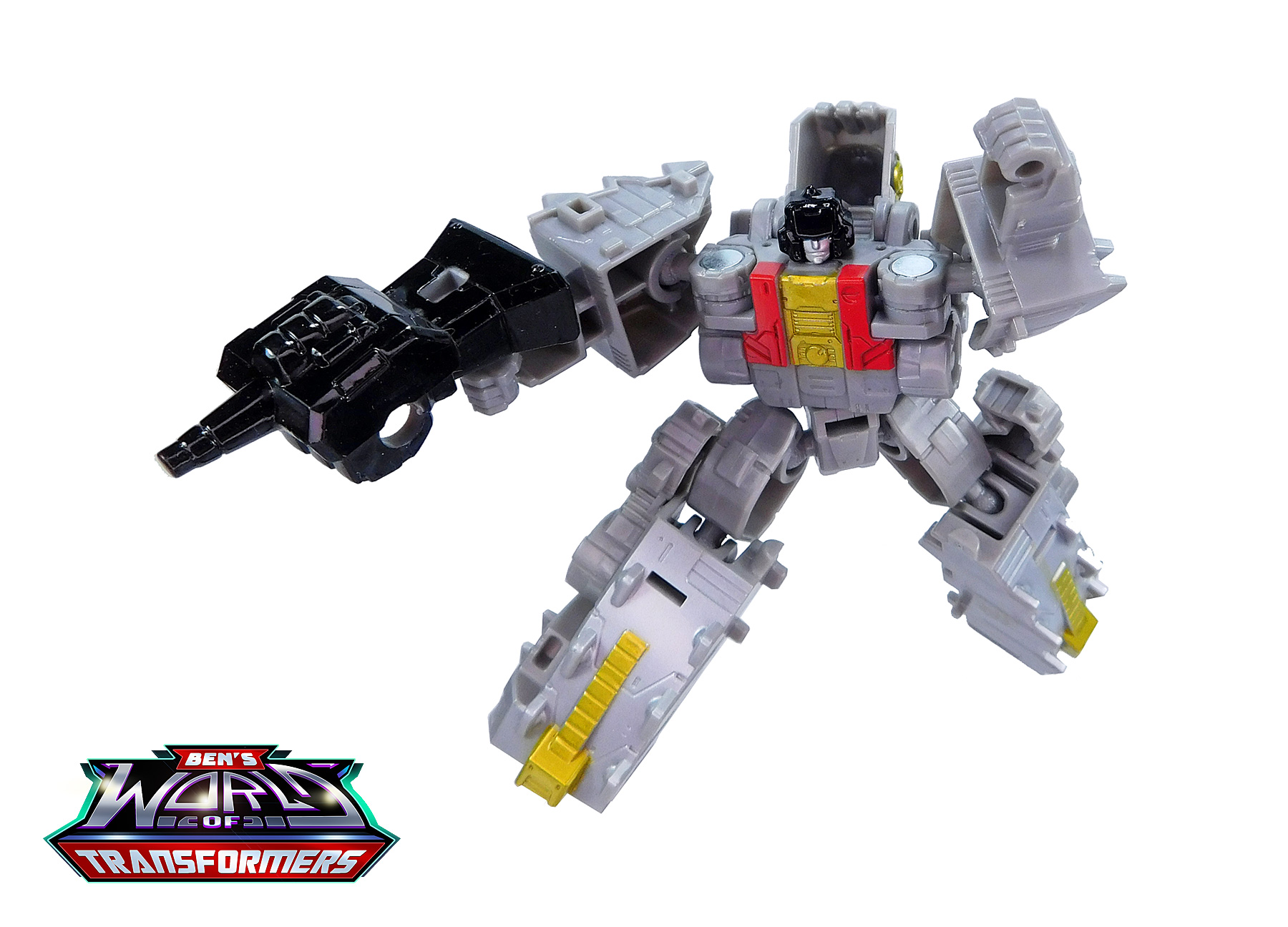 There are eight points of articulation on this figure including waist and head articulation. His weapon fits in either fist. Thanks to his really big legs, he is very stable in robot mode and all his joints are nice and tight.