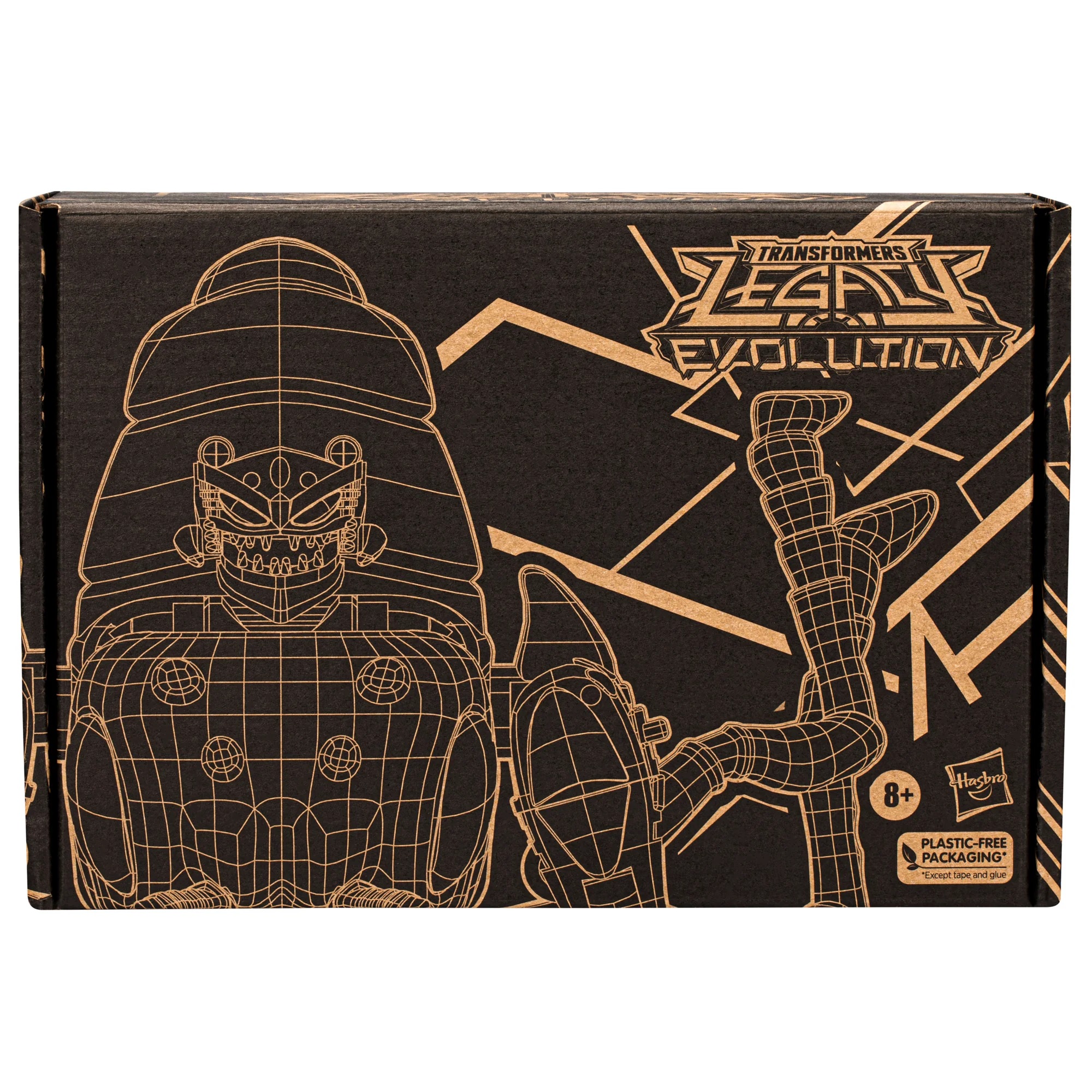 Antagony is packaged in the standard type of cardboard brown box that most Selects figures have come in over the years. There is a drawing of Antagony on the front wrapping around the sides along with a Predacon symbol. The Legacy Evolution logo looms large in the front but technically this figure is classified under the Selects banner in most product listings. Inside, the figure sits attached to a tray by ties and the instructions are underneath.