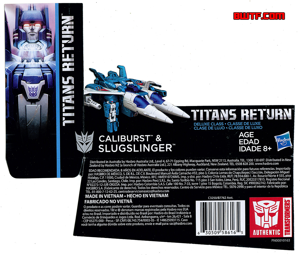 Caliburst was G1 Slugslinger's Targetmaster partner. This time out he transforms into Slugslinger's head instead of his weapon.