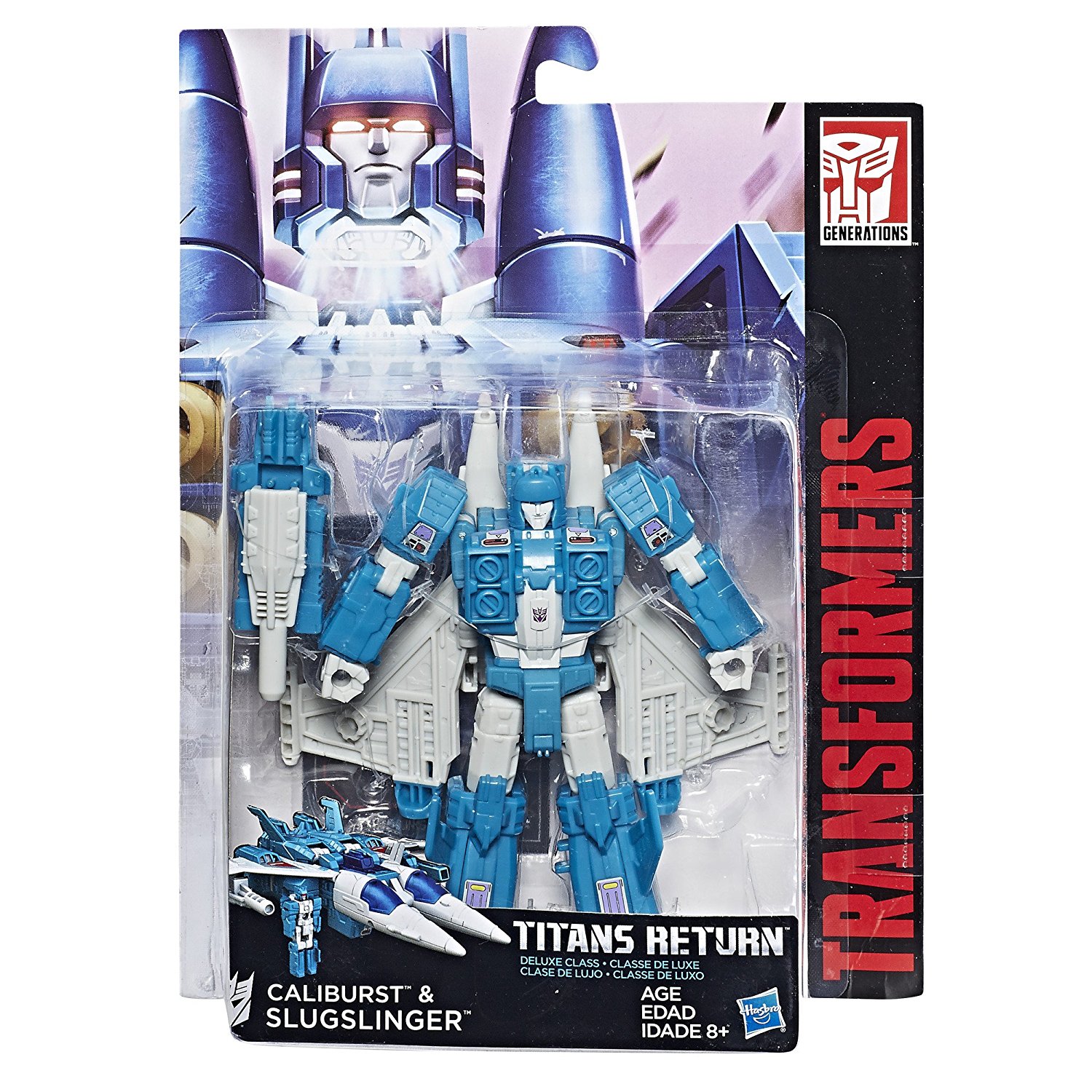 Transformers Generations Titans Return Deluxe Class figures are 5.5-inch scale figures that come with a Titan Master figure. The Titan Master figure becomes the head of the Deluxe Class figure. It also works with Deluxe Class, Voyager Class, and Leader Class Titans Return figures (each sold separately).