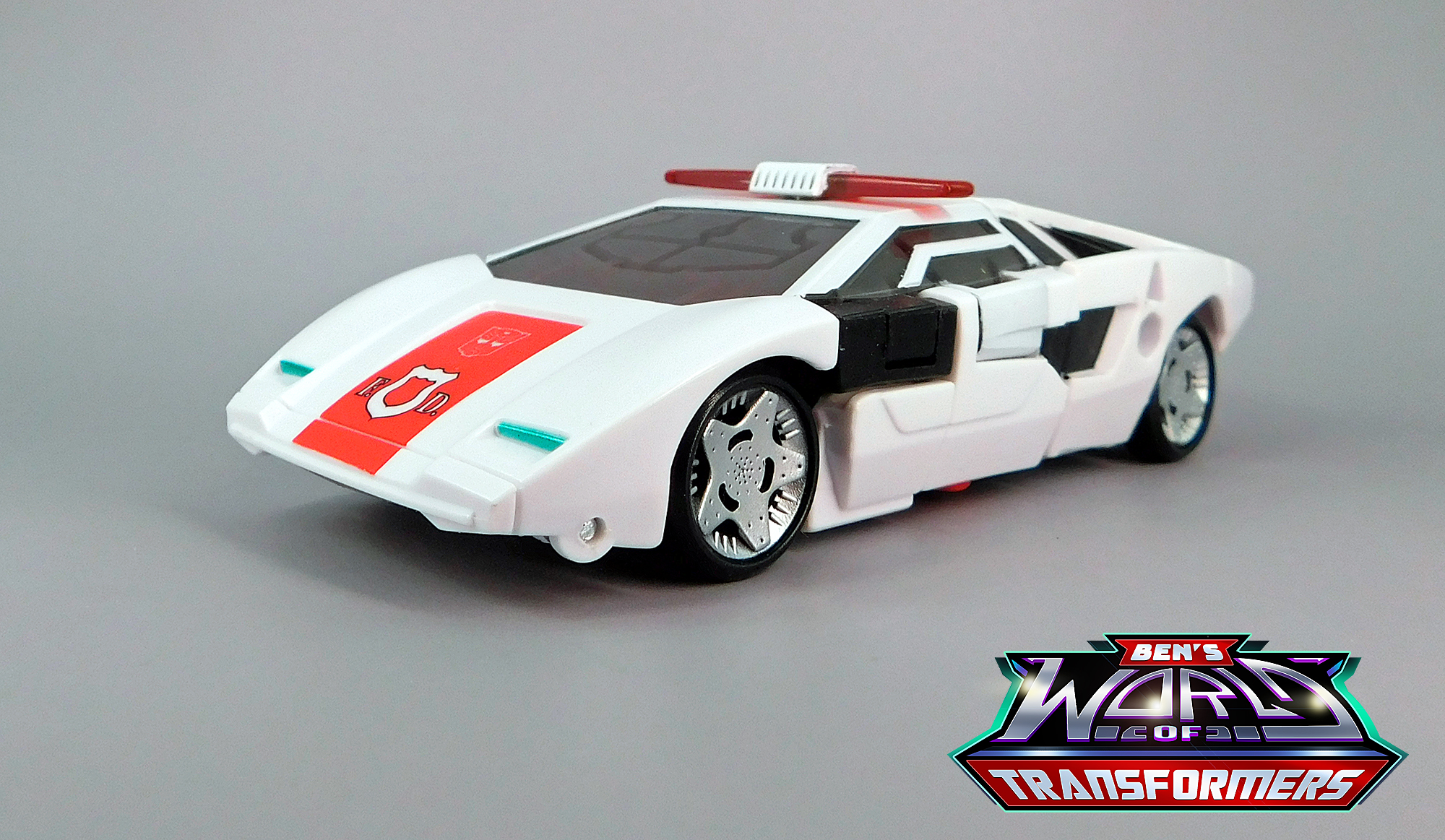 This vehicle mode could have easily been rather boring since the primary color is white. However, some of the black plastic parts from the robot mode peek through here and help break up the white. There are also parts like the vents on the sides painted black that further offer up some color variety. Add to that the red on the lightbar and hood and you have a really striking looking vehicle.