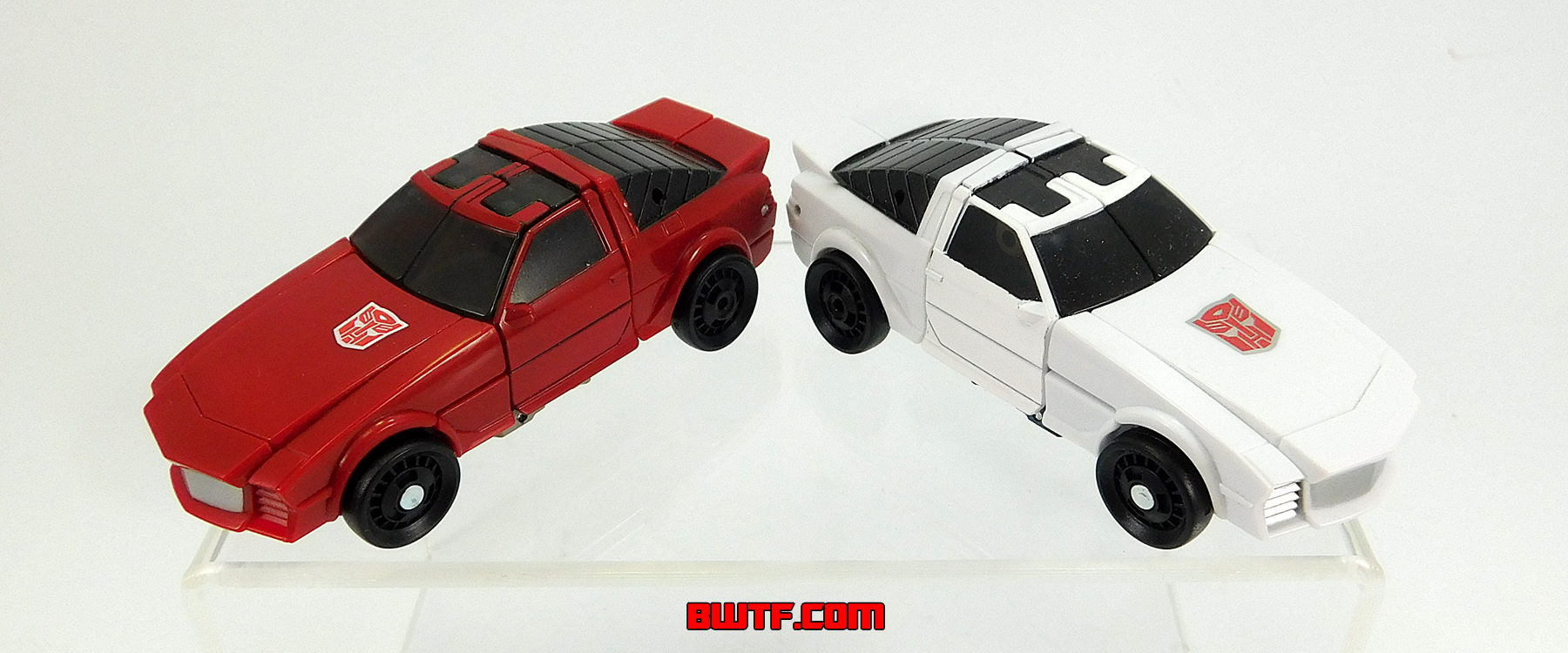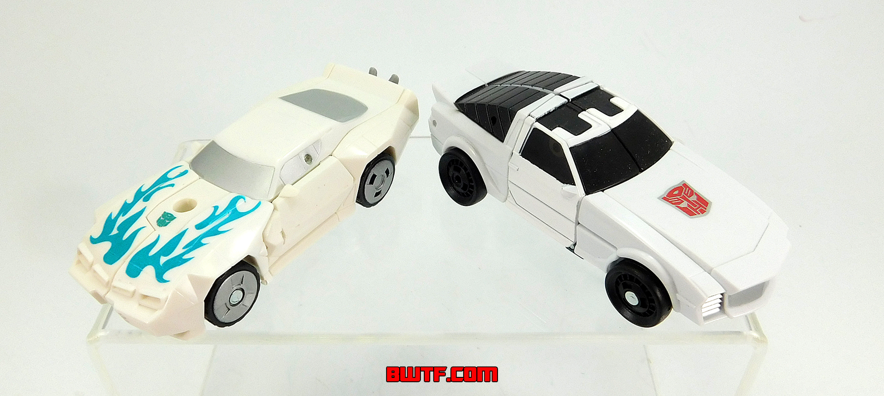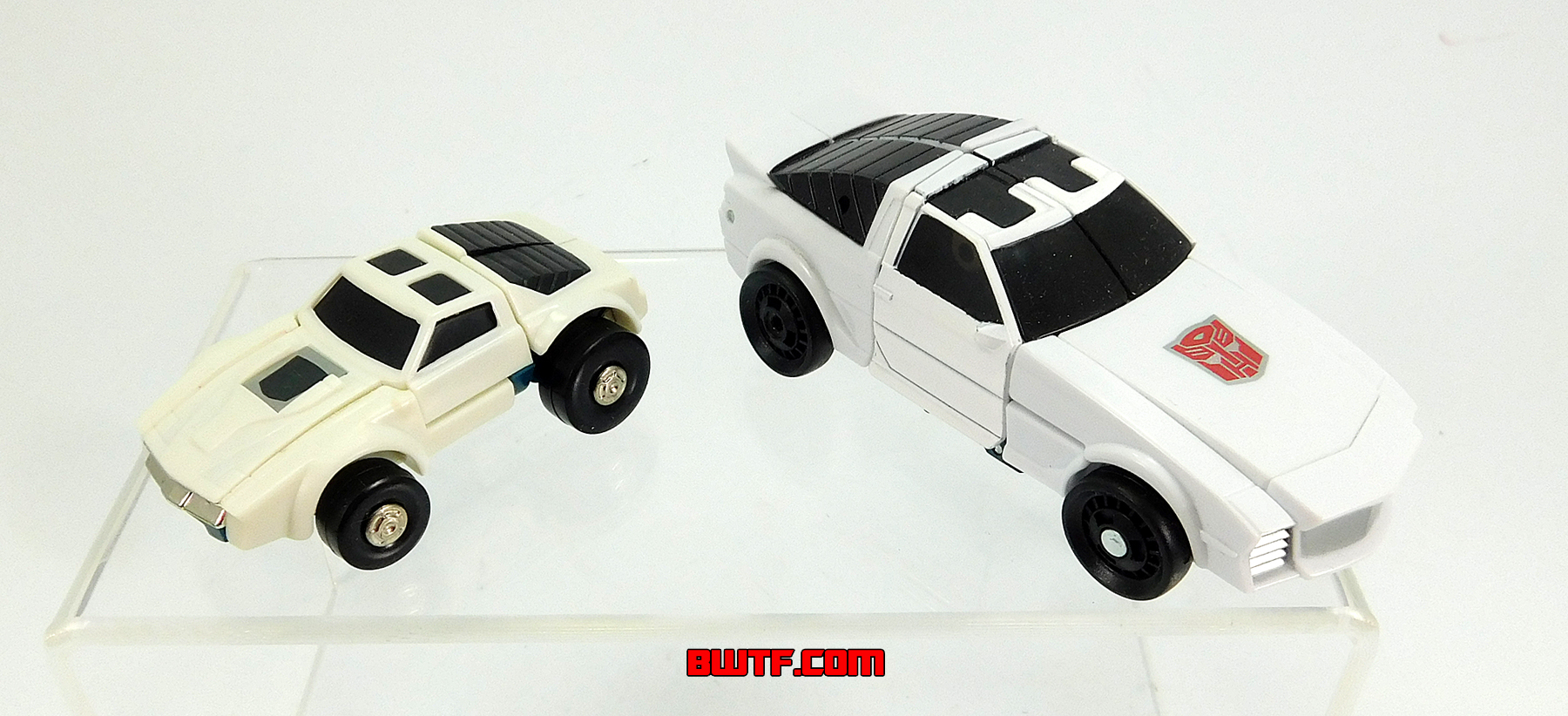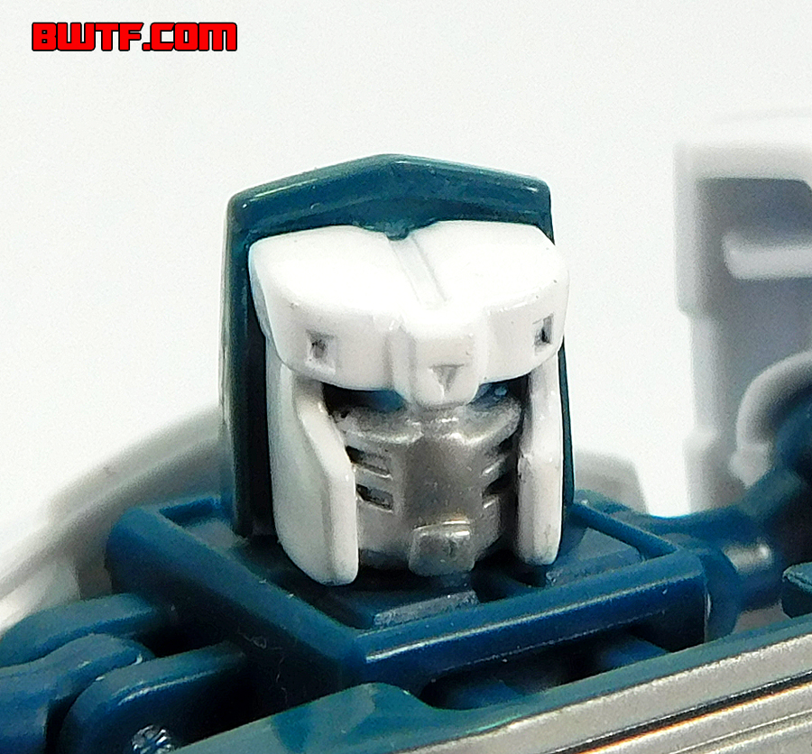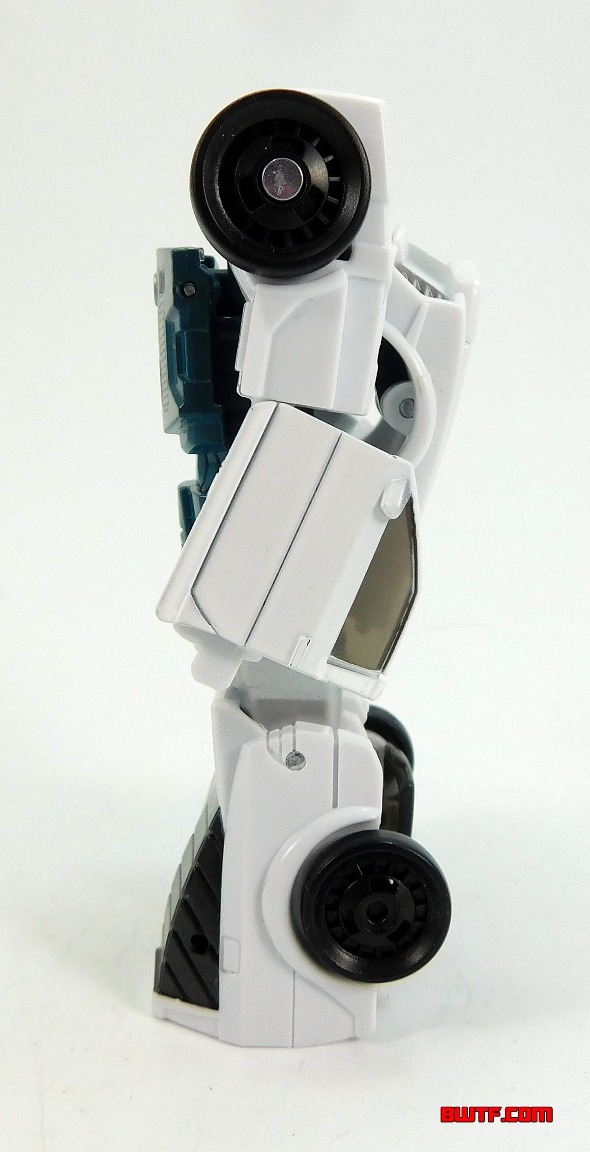 There have been no tooling changes for this mode, so it basically looks like a white and black version of Windcharger's vehicle mode. This jives with how G1 Tailgate looked since he too was a Windcharger redeco. There is silver paint used in the front and black paint used in the back. The hood has a large Autobot symbol on it, calling back to the sticker that was on G1 Tailgate's hood. The deco looks great and is serves as a cool G1 homage.