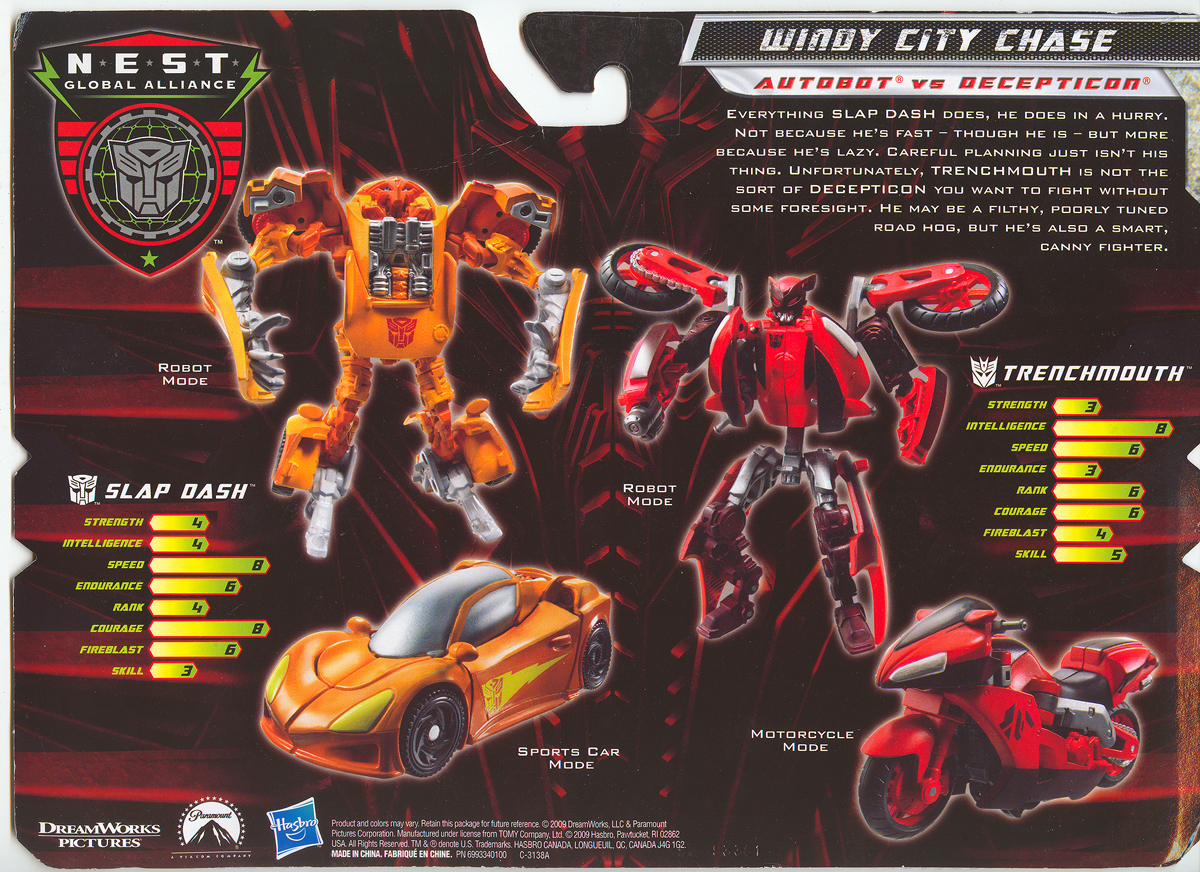 The "Windy City Chase" is definitely a mixed bag for me. Since I already own all the previous incarnations of these sculpts, it really is a bit of a hard set for me to put down as "highly recommended", mostly due to Trenchmouth's color scheme being not very distinct from Reverb. However, Slap Dash is a very strong redeco of an excellent sculpt, and if you don't have Reverb, Trenchmouth won't seem like that much of a repeat buy. Recommended with reservations.
