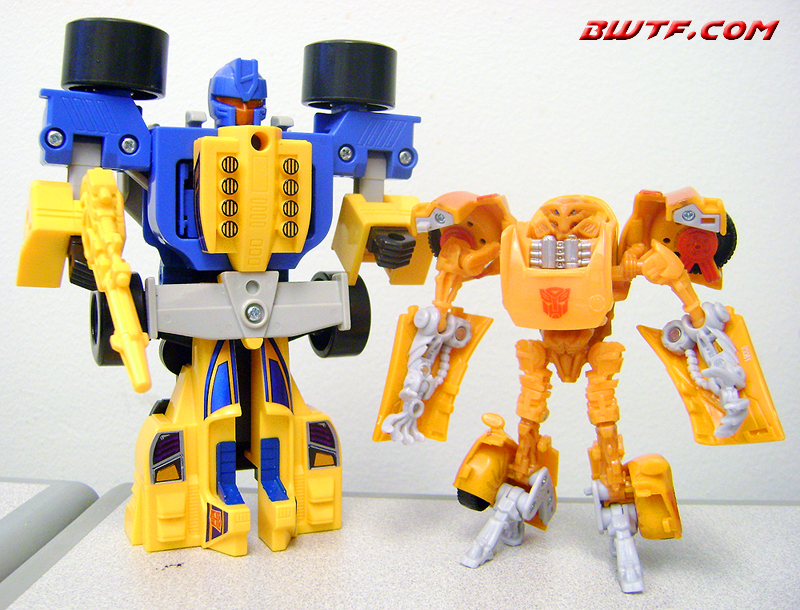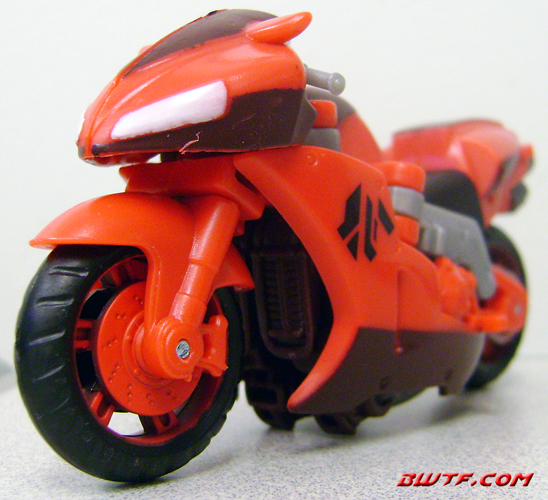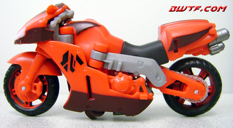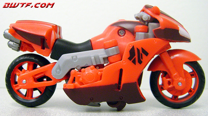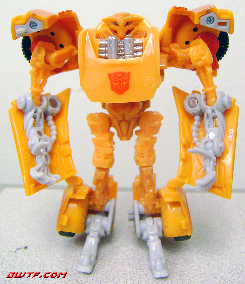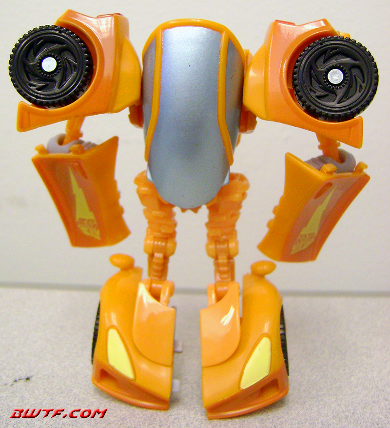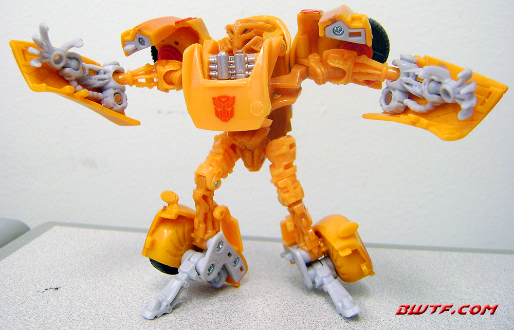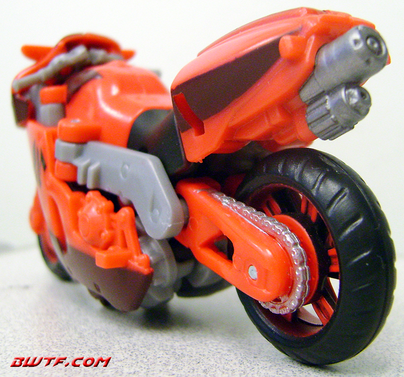 So here's the funny part about me reviewing this figure. When I first got it, I thought "Huh, it's a Wheelie homage." Then I saw it's name as "Slap Dash" and thought "Okay, not a Wheelie homage, maybe Slap Dash from G1". Then I looked at my G1 Slapdash, which is mostly blue, yellow and grey and scratched my head. Taking a look at G1 Slap Dash's partner, Lube, I noticed the Powermaster was mostly orange and dark grey. Still however, that didn't quite match up to this figures' colors. Then I looked at Legends Class Wheelie and I had to relent. For whatever reason, Revenge of the Fallen Slap Dash is a homage to G1 Wheelie. It does make sense that they wouldn't name him Wheele since that name is currently being used by the small Decepticon turned Autobot who appeared in the movie. I was a bit disappointed in this, not because Slap Dash is a homage to Wheelie, but because Slap Dash is a fairly obscure character in Transformers history and it would've been nice to see an updated homage to him (just as Nightbeat was a color appropriate homage to his G1 counterpart). Call him what you will, the toy is still quite distinctive.