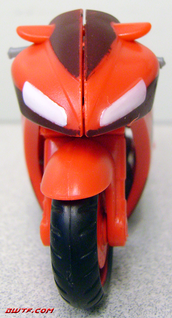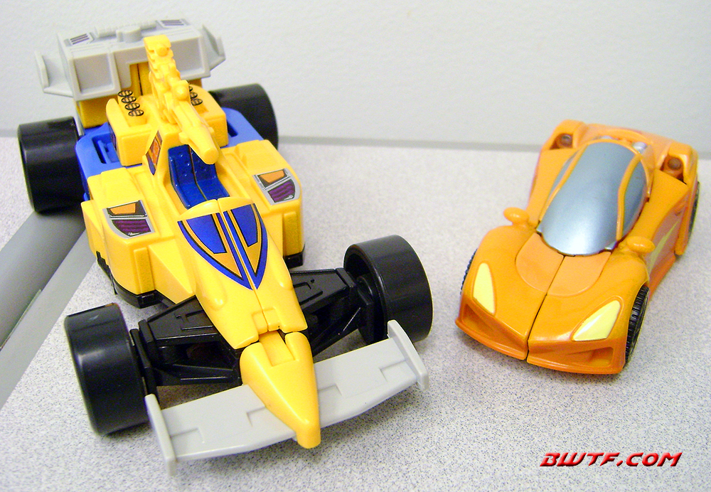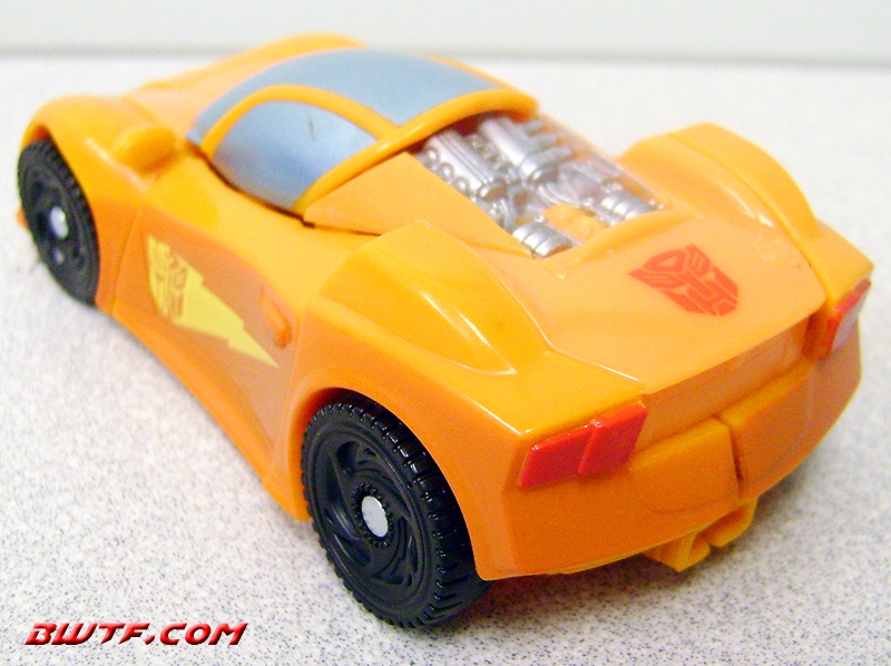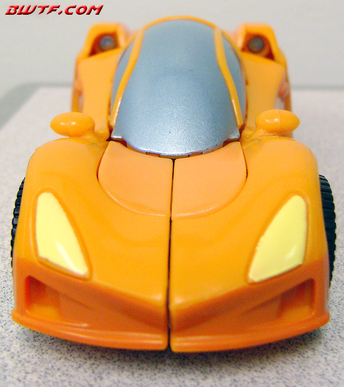 I think in vehicle mode the choice to make this sculpt a Wheelie homage suddenly becomes obvious. Much like G1 Wheelie's vehicle mode, this one is sleek, compact and has an oval shaped cabin section. The shape fits and it's really one of those things that struck me as so blindingly obvious in these colors that I could not believe I did not see it previously.